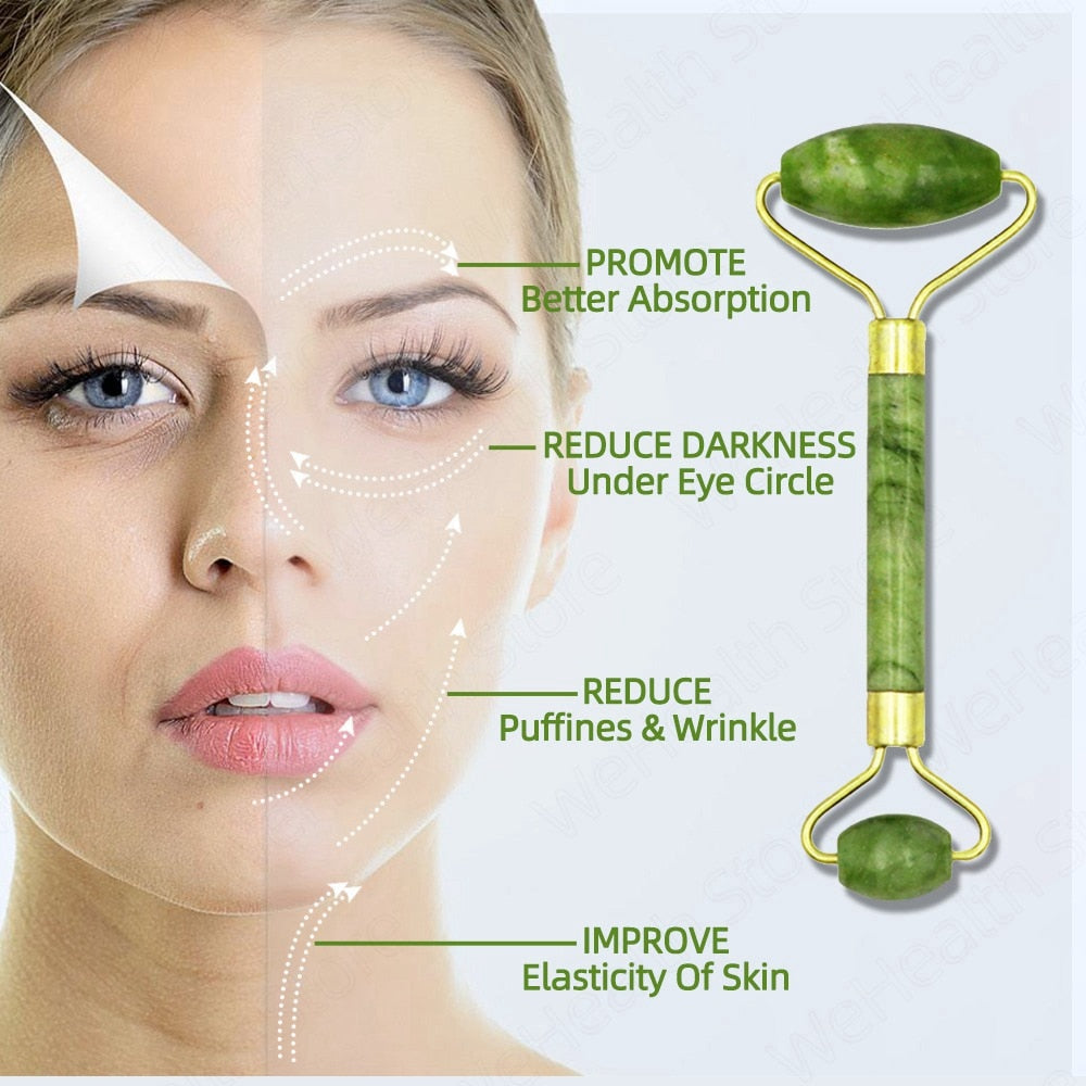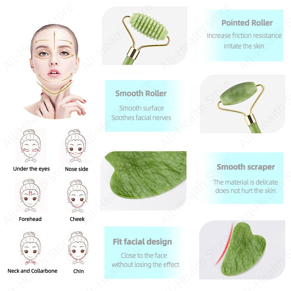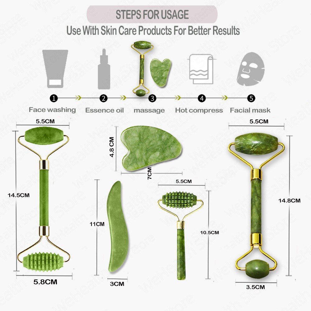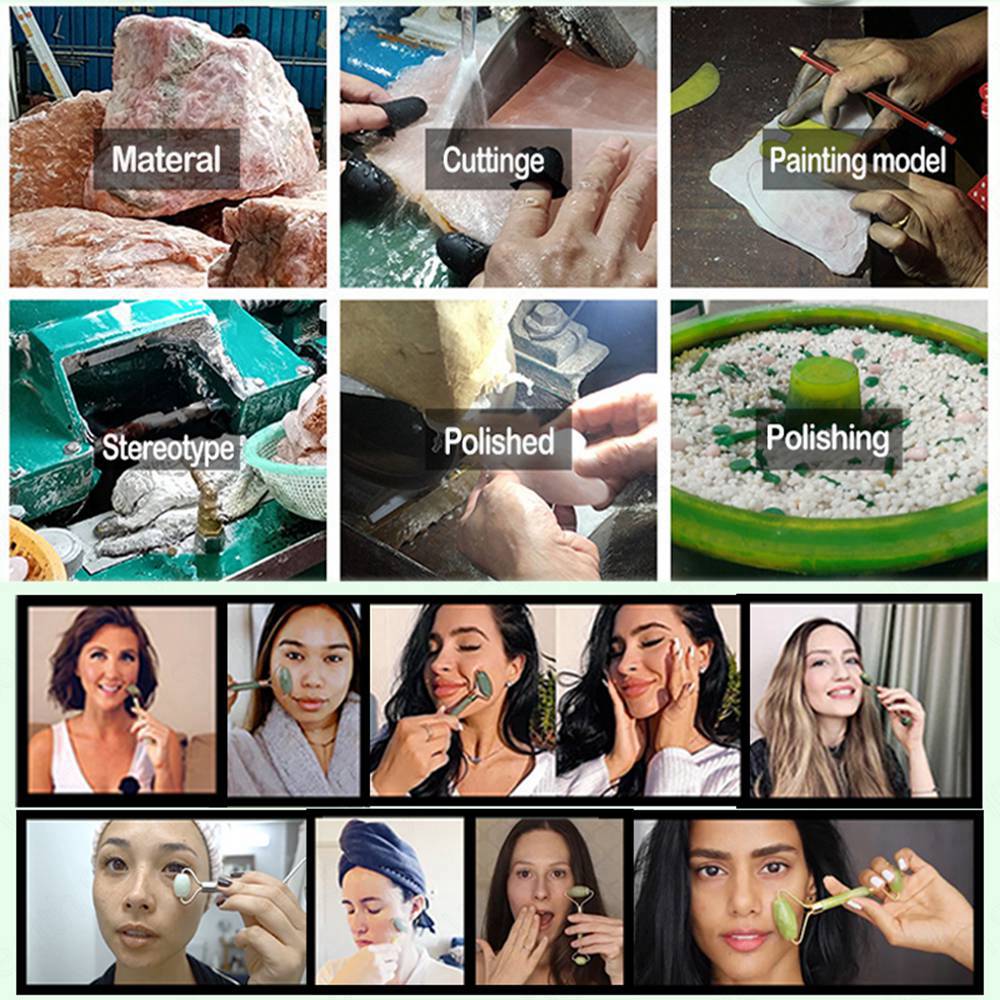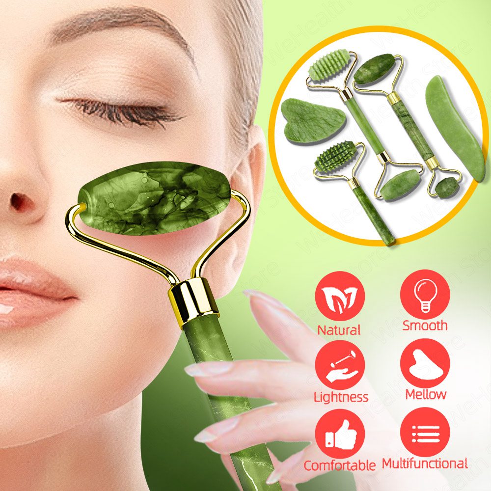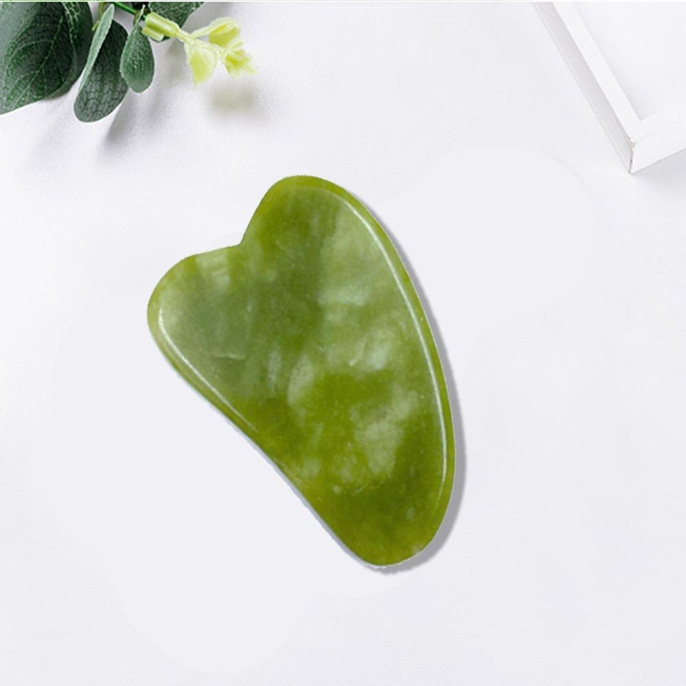 Desfrute de um massagem natural e saudável. Jade Gua-sha são placas feitas da pedra Jade 100% natural. Atua no anti-envelhecimento, anti-rugas, reduz coloração escuras sob os olhos e melhora a saúde da pele sem quaisquer produtos químicos ou irritantes.