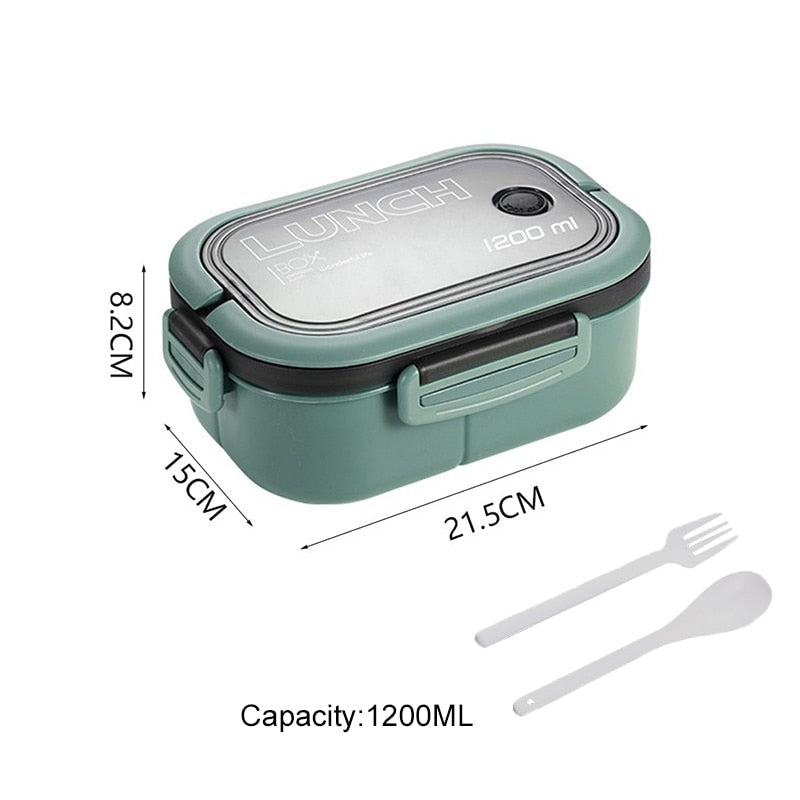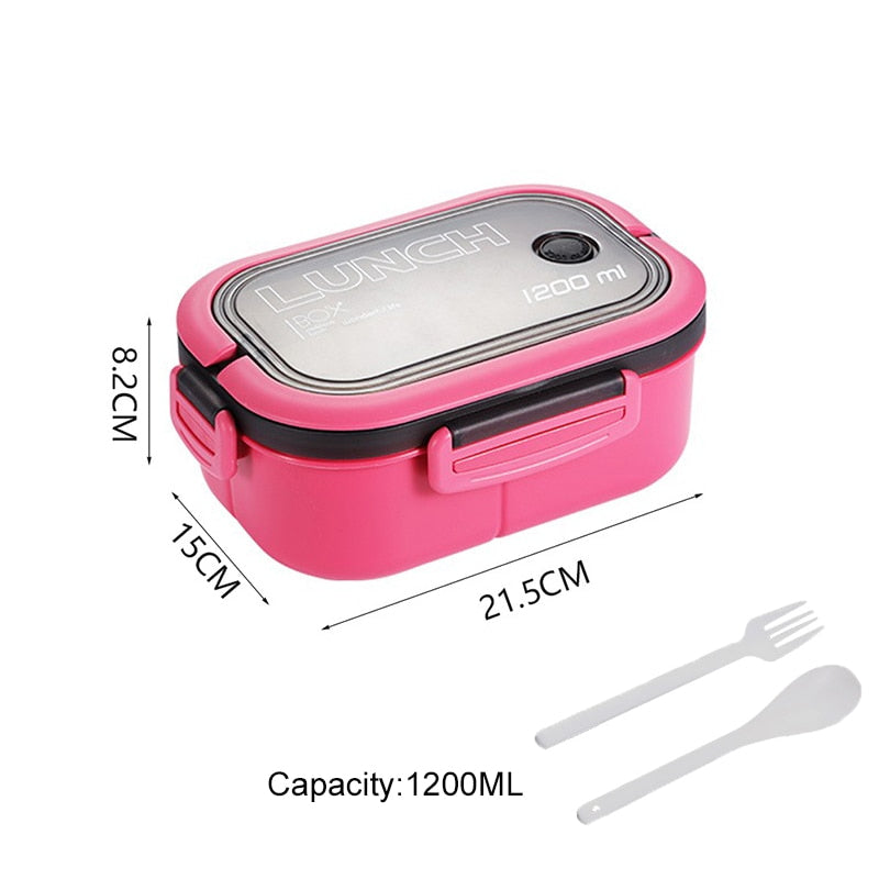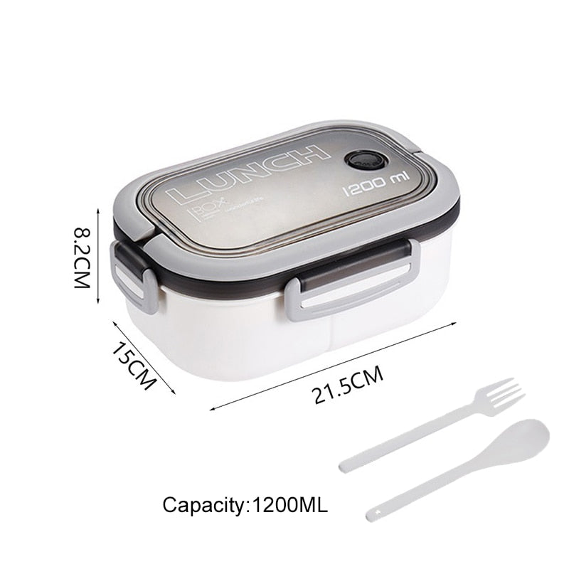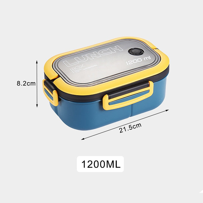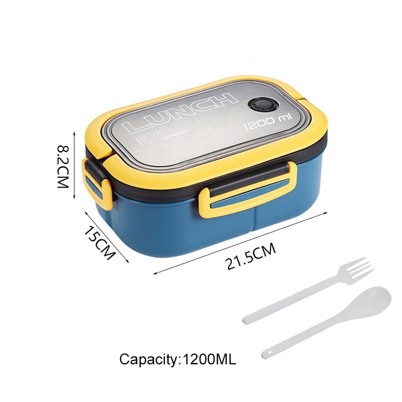 A Marmita Com Divisórias e Talheres para levar para a escola ou para o trabalho com um recipiente de almoço isolado e empilhável que inclui compartimentos à prova de vazamentos e derramamentos com selos de silicone fáceis de abrir.