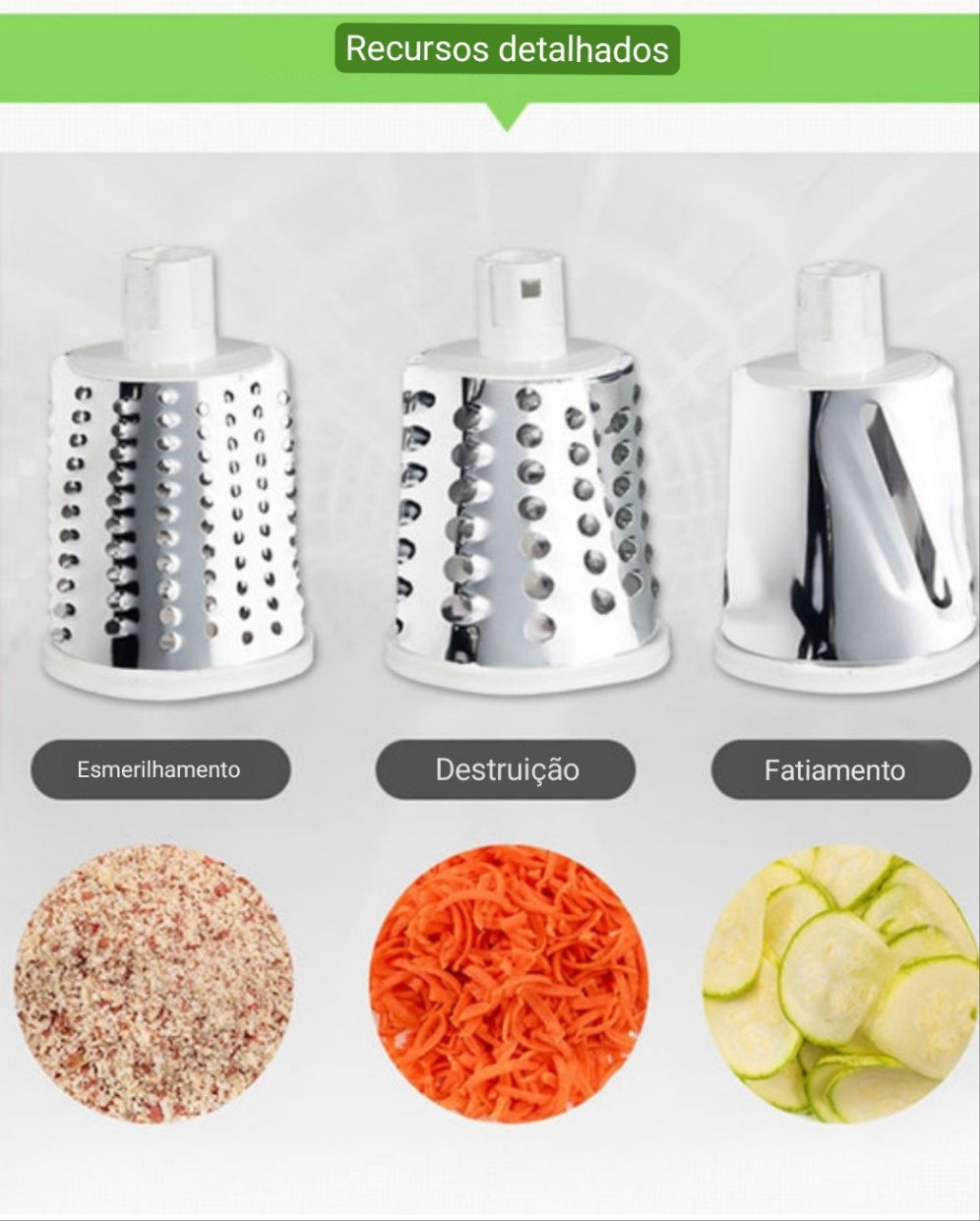 Com o nosso ralador, você pode criar saladas, massas e sopas incríveis, com cortes perfeitos e uniformes em todos os ingredientes. Não perca mais tempo cortando manualmente seus vegetais e frutas.