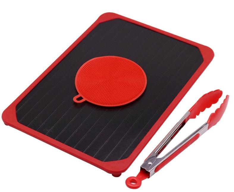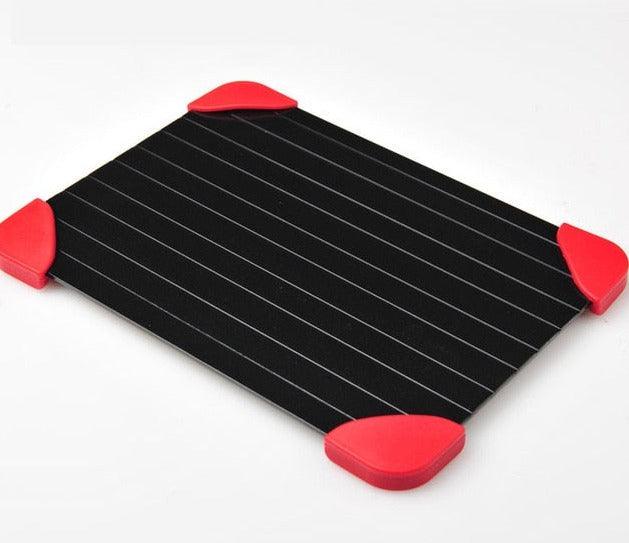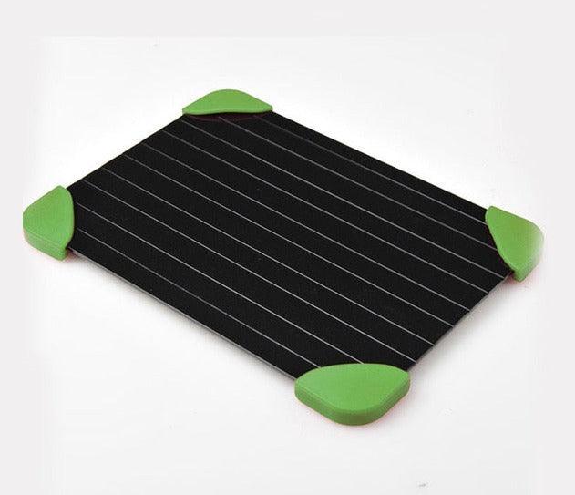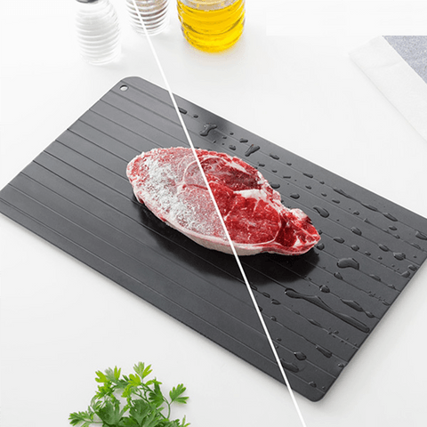 Basta colocar os alimentos congelados nesta tábua metálica anti-aderente e esta descongelará até quatro vezes mais rápido sem perder as suas propriedades e nutrientes.